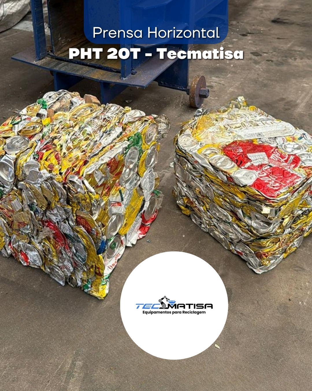 A Prensa Horizontal PHT 20T da Tecmatisa é um equipamento desenvolvido para compactação de latinhas de alumínio e resíduos recicláveis, oferecendo mais produtividade, organização e rentabilidade para recicladores, cooperativas e indústrias.